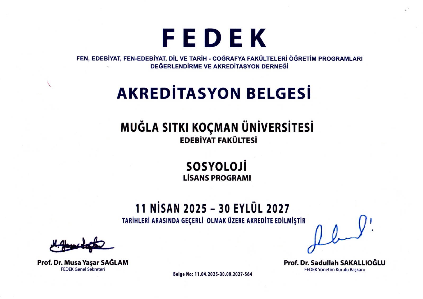 Bölümümüz "FEDEK Tarafından Akreditasyon Verilen Lisans Programı" Listesinde
